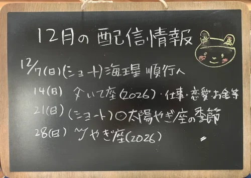 12星座別の月間占いは、定期的に配信しています。第3日曜日が目標で、難しいときは第4日曜となることがあります。