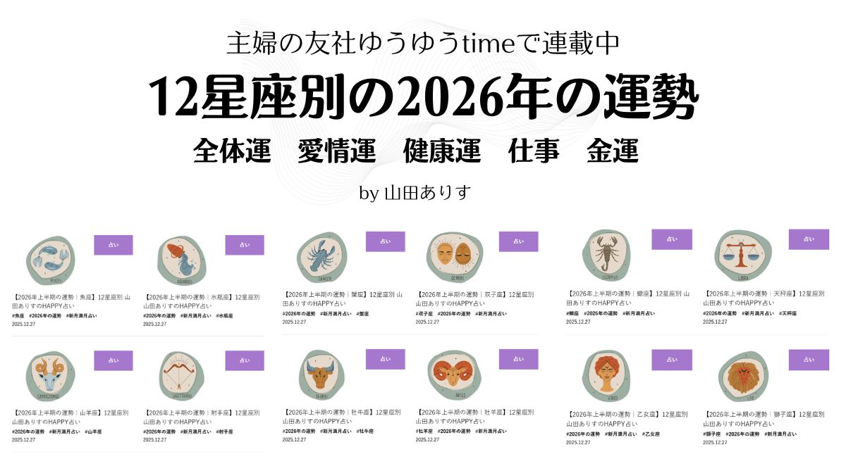 恒例の12星座別の運勢の2026年(仕事・お金・愛情・健康・全体)が更新されました。
